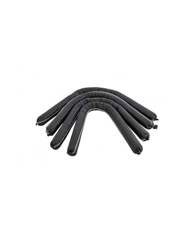 Boudins absorbant liquides, flocons de polypropylène dans gaine non tissée, 8 cm x 1,20 m, couleur grise. Carton de 20 boudins, capacité d'absorption 106 L/carton ou 5,3 L/boudin.