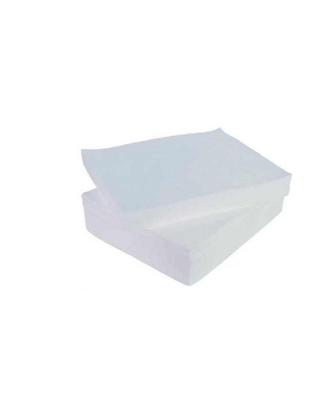 Feuilles absorbant hydrocarbures, pur fibre de polypropylène, spécial dépollution. Blanc et sans prédécoupe, double épaisseur, non calandrée, 40 x 50 cm. Sac de 100 feuilles (20 m2), capacité d'absorption : 113 L/sac ou 1,13 L/feuille.