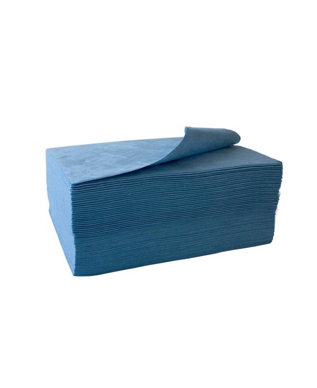 Feuille absorbante hydrocarbures, pur fibre de polypropylène, simple épaisseur, non calandrée, prédécoupée, 40 x 50 cm, couleur bleu. Carton de 200 feuilles (40 m2), capacité d'absorption : 135 L/carton ou 0,67 L/feuille.