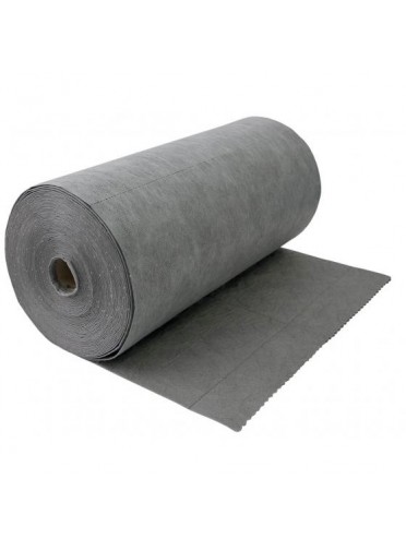 Rouleau aborbant tous liquides, pur fibre de polypropylène, simple épaisseur, non calandré, prédécoupé au pas de 50 cm et en largeur au milieu, 80 cm x 60 ML, couleur gris. Carton de 1 rouleau (48 m2), capacité d'absorption : 162 L.