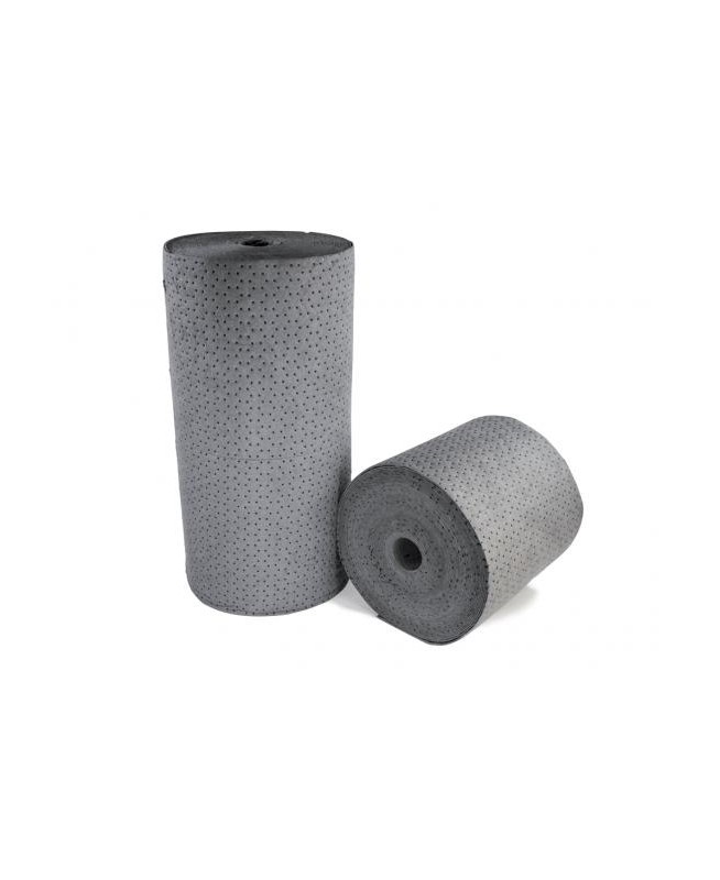 Rouleau absorbant tous liquides, pur fibre de polypropylène, double épaisseur, calandré avec voile anti-peluches 1 face, prédécoupé au pas de 50 cm, 40 cm x 40 ML, couleur gris. Carton de 2 rouleaux (32 m2), capacité d'absorption : 162 L/carton ou 81 L/rouleau.