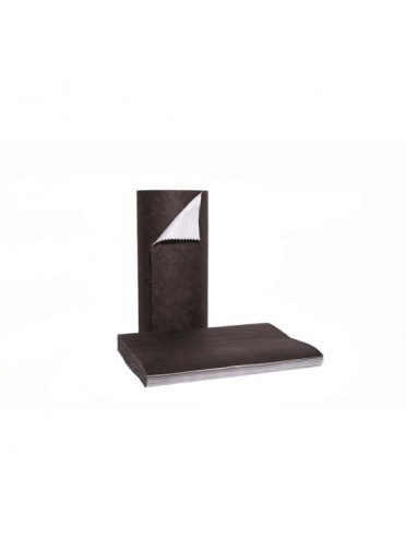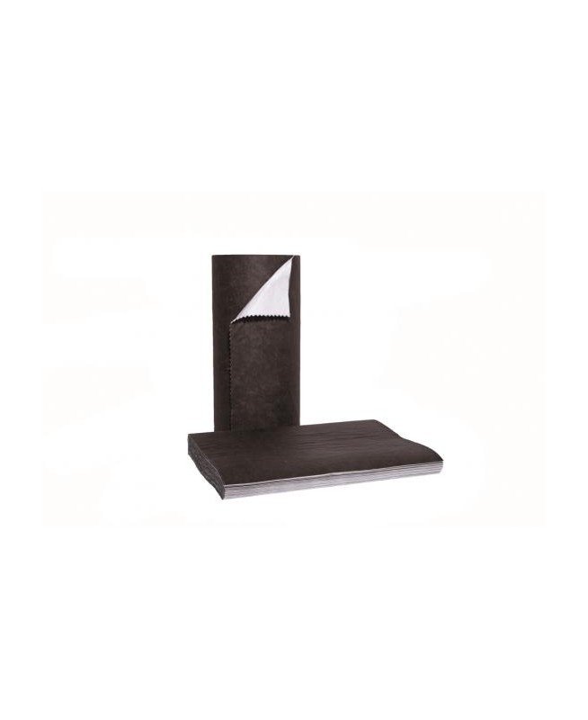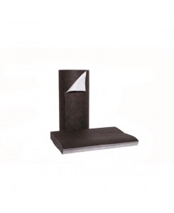 Tapis, absorbant hydrocarbures, pur fibres de polypropylène, 3 couches : Quadruple épaisseur PP, calandré avec voile de surface extra renforcé dessus et revers étanche et anti-dérapant dessous, 1,42 x 25 m. Couleur : noir dessus et blanc dessous. Sac de 1 tapis (35,5 M2), capacité d'absorption 350 L.
