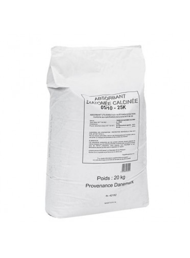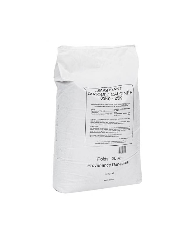 Granulé minéral absorbant tous liquides. Diatomée calcinée. Homologué pour un usage routier - Unité de vente : sac 20 kg (environ 40 L) - Palette 50 sacs.