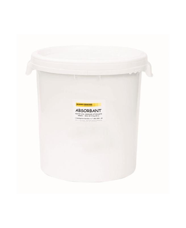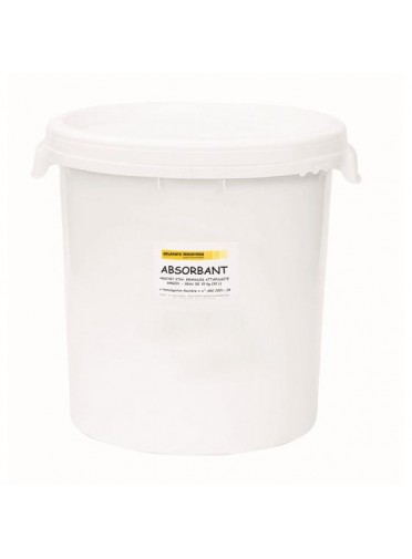Granulé minéral absorbant tous liquides, Attapulgite calcinée. Unité de vente : seau de 30 L (environ 15 kg). Seau en PP blanc avec 2 poignées latérales. - Palette 32 seaux.