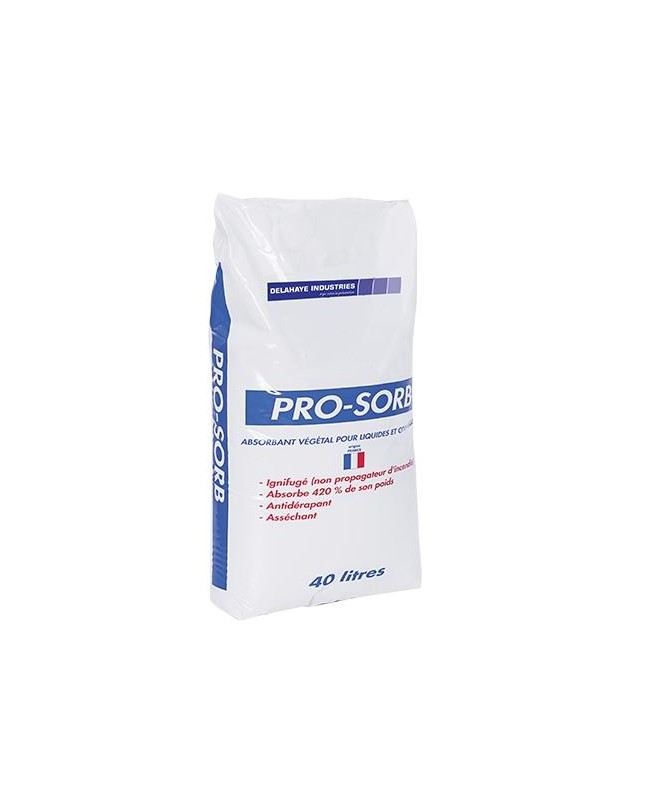 PRO SORB : Granulé Végétal absorbant tous liquides, ignifugé, déshydraté et dépoussiéré. Unité de vente : sac de 40 L - 8 kg -