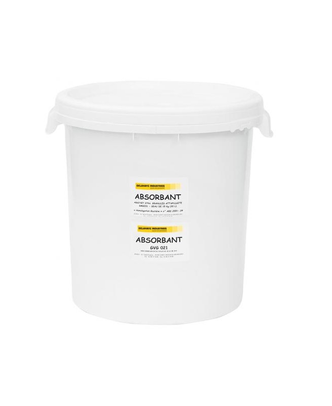 PRO SORB : Granulé Végétal absorbant tous luides, ignifugé, déshydraté et dépoussiéré. Unité de vente : seau de 30 L (6 kg) - Palette 32 seaux.