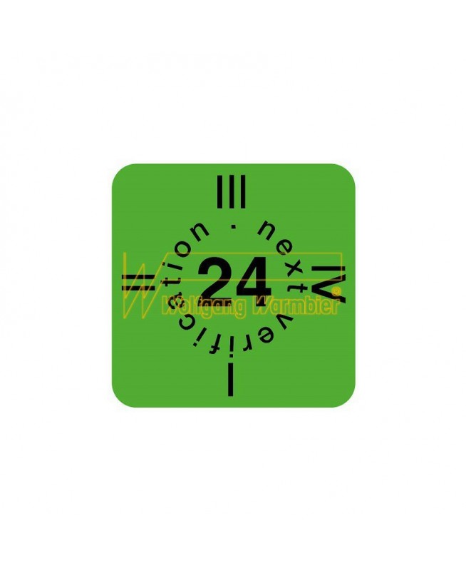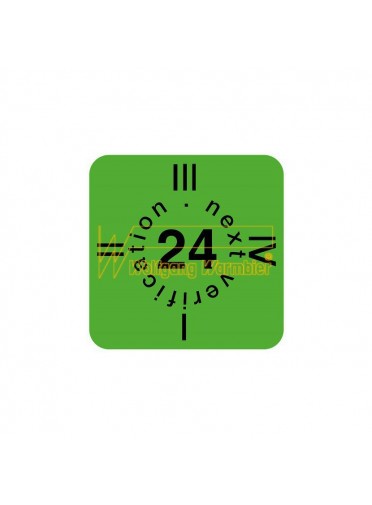 warning label,15x15 mm yellow- green, for 2024, 30 pcs/sheet / Prix par 1 uni