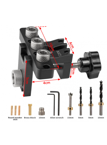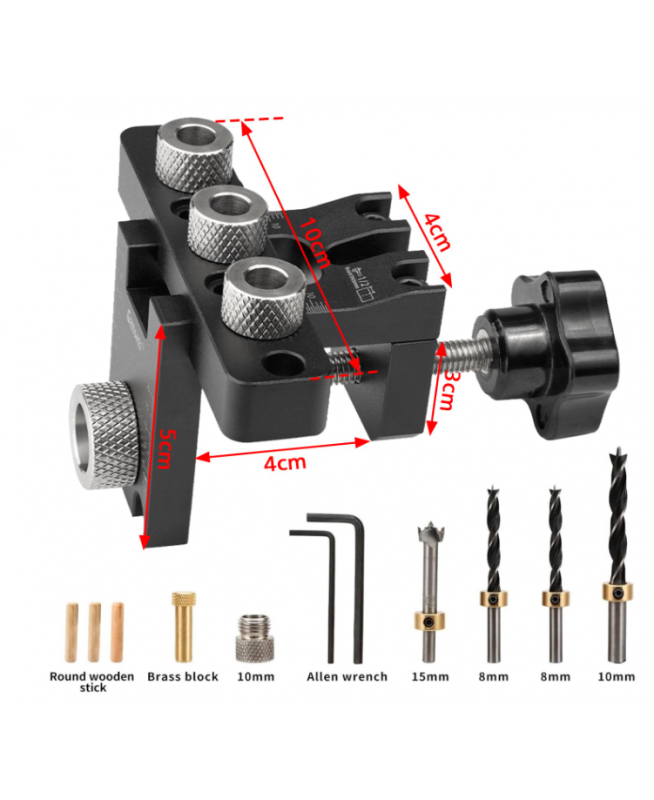 FIVAVA Gabarit de perçage 8/10/15 mm - Jig 3 en 1 - Avec clip de positionnement - Guide de perçage réglable - Outil de menuiserie