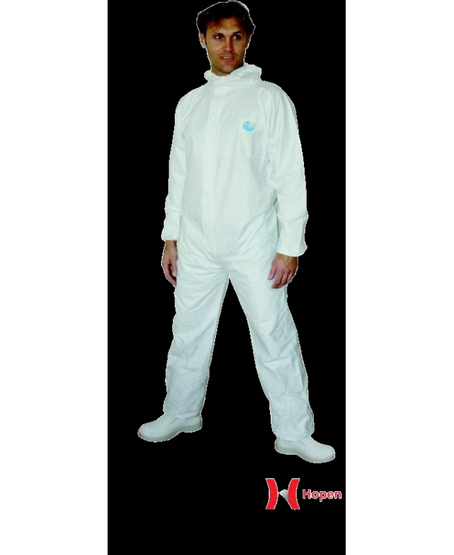 Combinaison jetable amiante Hop'Sage Plus Hopen, en SMS/PE microporeux blanc.