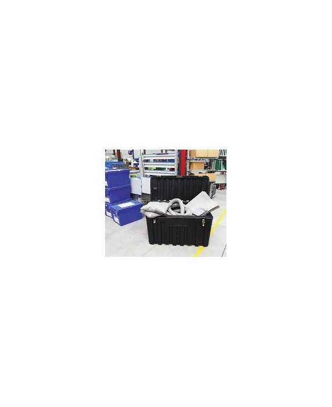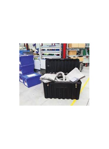 "Coffre ultra résistant, capacité 200 litres, pour usage intérieur / extérieur. Fabriqué en PEHD, ultra résistant aux chocs. Avec passage de fourche, poignées latérales et fermeture type ""grenouille"" avec logement pour cadenas (non fourni). Coffre gerbable (3). Garantie 5 ans. Dimensions : 1000 x 560 x H590 mm, couleur noir"