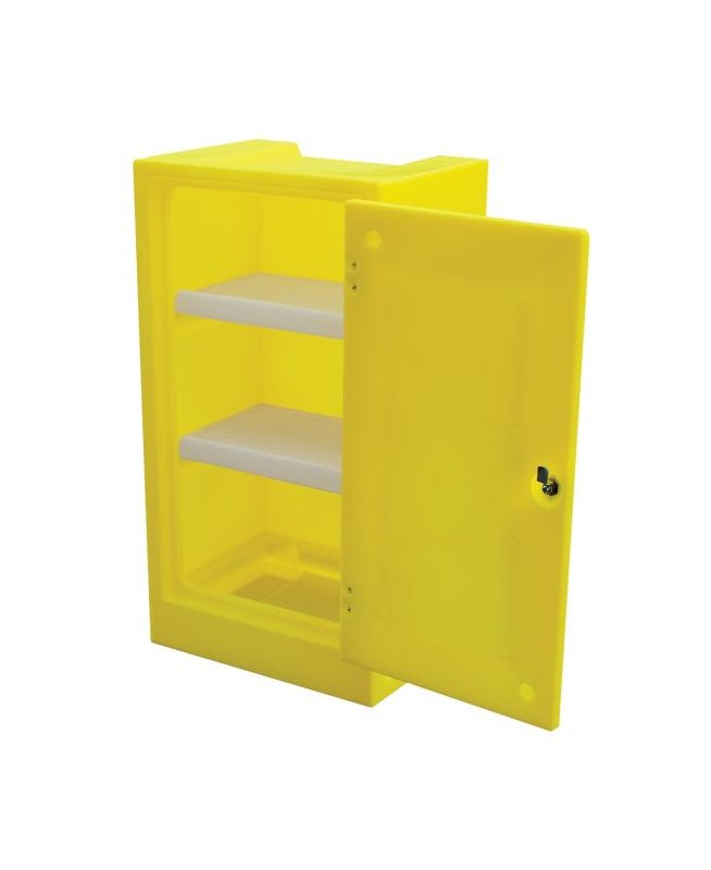 Armoire de stockage (534 x 420 x 990 mm) en polyéthylène jaune, avec serrure. Capacité de stockage 60 litres.