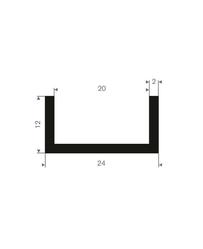 Profilé en U 20mm caoutchouc compact LxH=24x12mm (L=50m)