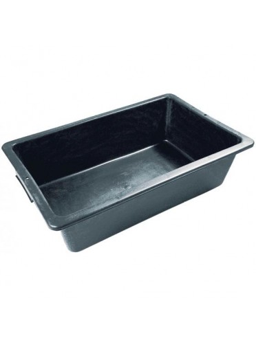 Bac 25 litres en polyéthylène injecté avec poignées incorporées et bords inclinés. Dim. : 600 x 390 x H160 mm, couleur noire.