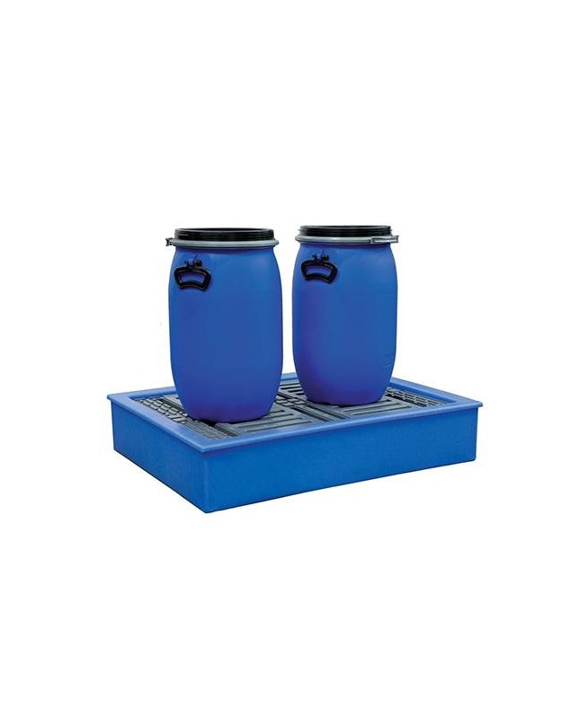 Bac de rétention polyéthylène, rétention de 100 litres, avec caillebotis polyét