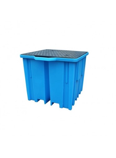 Bac polyéthylène avec zone de soutirage, rétention de 1150 litres, caillebotis polyéthylène amovible. Avec double passage de fourches. Dimensions : 1230 x 1340 x 1090 mm, couleur : bleu.