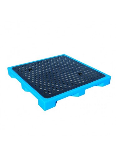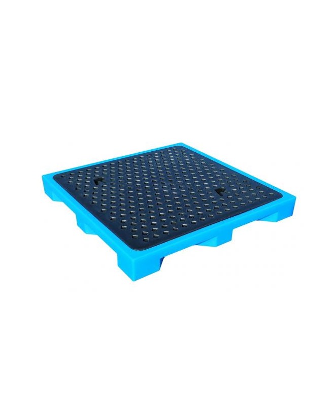 Plancher de rétention, capacité 75 litres, avec caillebotis amovible. Fabriqué en polyéthylène. Coloris bleu et caillebotis noir, poids 32 kg