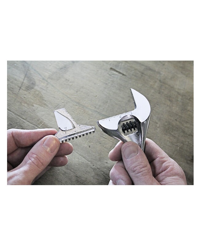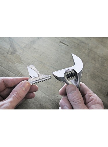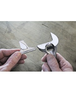 "CLE A MOLETTE 8 MORS REVERSIBLEClé à molette à ajustement rapide du mors mobile sur l’écrou - mors réversible à denture fine pour les serrages - longueur 8""- ouverture maximale 33 mm - tête inclinée à 22° - une face graduée en mm - manche bi-matière - FACOM 101.8GR - UC : MULTIPLE DE : 1"
