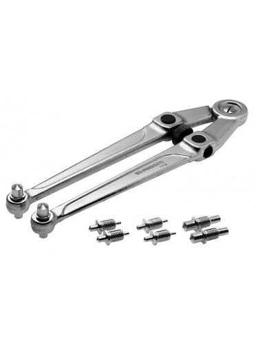 CLES POUR ECROUS A TROUSClé pour écrous à trous percés sur la face - réglage par la vis centrale - capacité 20 à 100 mm - corps chromé satinée - FACOM 117.B - UC : MULTIPLE DE : 1