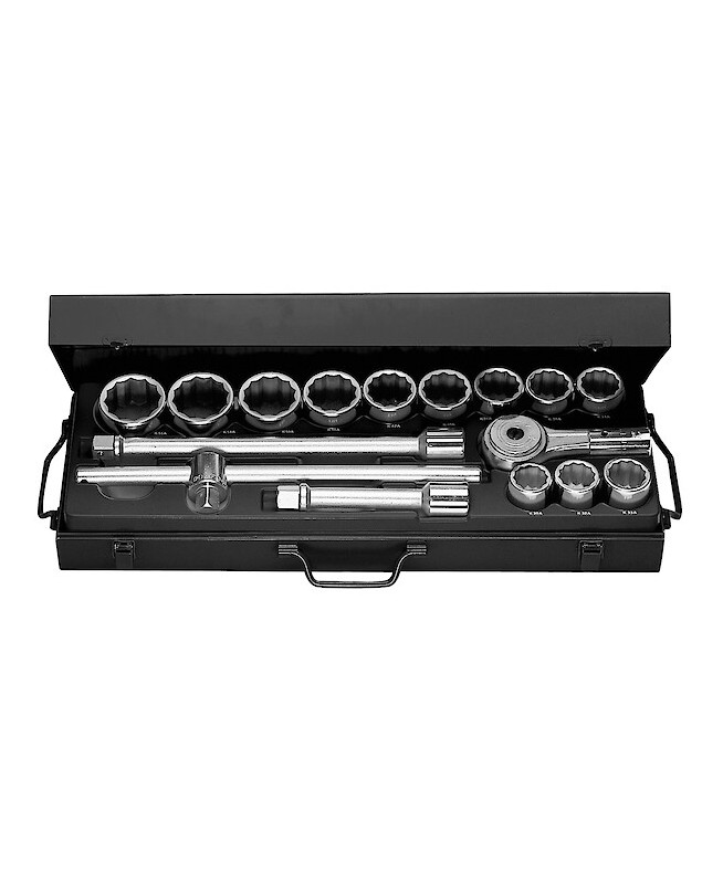 "COFFRET DOUILLE 3/4' 12P. MMCoffret douilles 3/4"" 12 pans - cliquet - 12 douilles 12 pans métriques de 30 à 55 mm - 2 rallonges - poignée coulissante - FACOM K.432E MULTIPLE DE : 1"