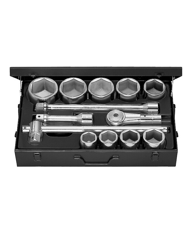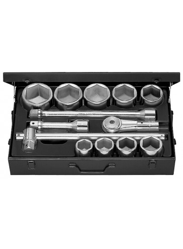 "COFFRET DOUILLE 1' 6P. MMCoffret douilles 1"" 6 pans mm - 1 x cliquet 1"" - 9 x douilles 1"" 6 pans métriques de 41 - 46 - 50 - 55 - 60 - 65 - 70 - 75 - 80 mm - 3 x rallonges 1"" - plateau thermoformé - FACOM M.423E MULTIPLE DE : 1"