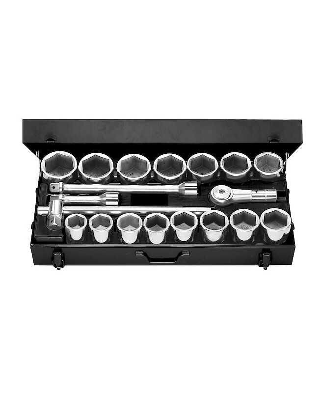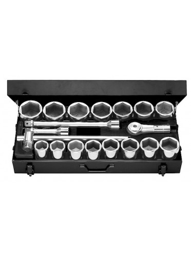 "COFFRET DOUILLE 1' 6P. MMCoffret douilles 1"" 6 pans mm - 1 x cliquet 1""- 15 x douilles 1"" 6 pans métriques de 46 à 82 mm - 2 x rallonges 1"" - 1 x poignée coulissante 1"" - plateau thermoformé - FACOM M.431E MULTIPLE DE : 1"