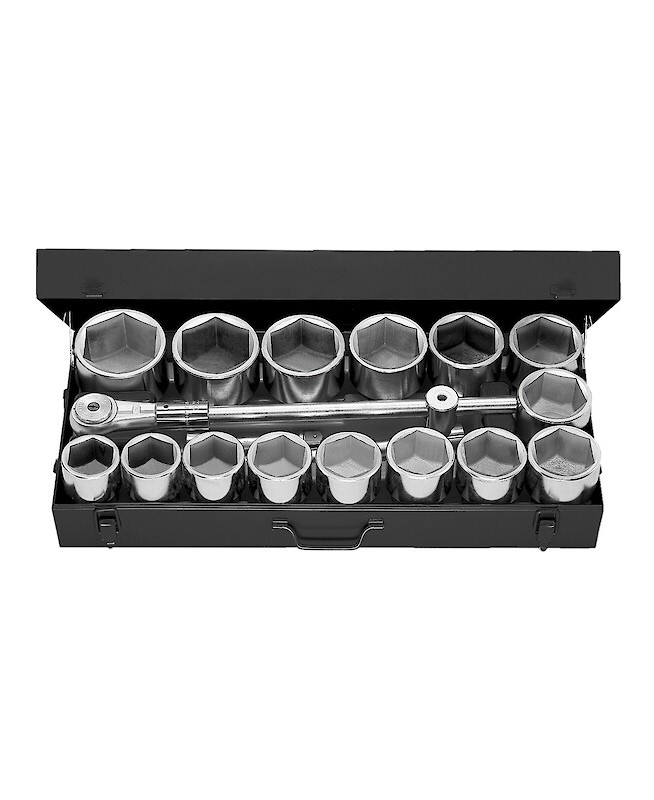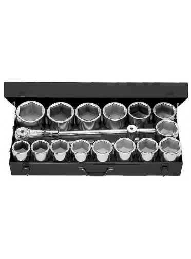 "COFFRET DOUILLE 1' 6P. MMCoffret douilles 1"" 6 pans mm - 1 x cliquet 1"" - 15 x douilles 1"" 6 pans métriques de 58 à 100 mm - 2 x rallonges 1"" - 1 x poignée coulissante 1"" - plateau thermoformé - FACOM M.441E MULTIPLE DE : 1"