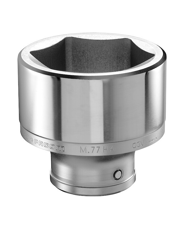 "DOUILLE 1' 6P 77MMDouille 1"" 6 pans 77 mm - culot aminci pour gain de poids - équipée d""un bouton de déverrouillage - chromée satinée - FACOM M.77HA MULTIPLE DE : 1"
