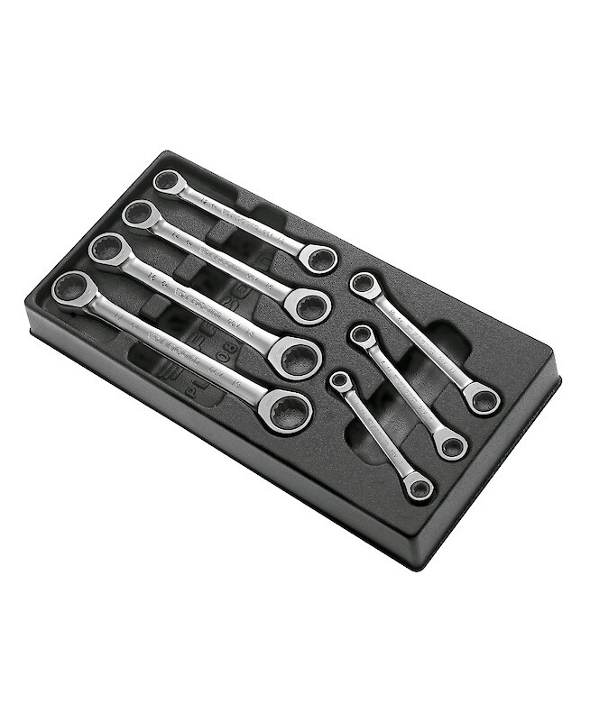 JEU 7 CLES 12P METRIQModule de 7 clés polygonales à cliquet droites métriques - tailles de 6x7 à 17x19 mm - accès à plat sur écrou - FACOM MOD.64J7 MULTIPLE DE : 1