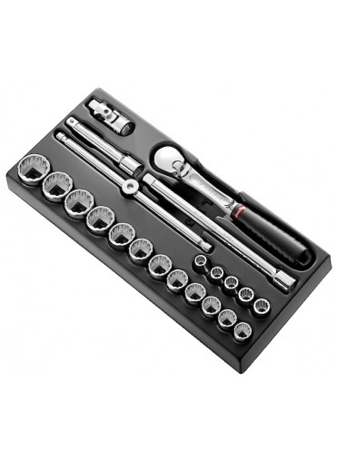 "MOD DOUIL 1/2' 12P IN SL.161 22PCModule douilles 1/2"" 12 pans pouce 22 pièces - cliquet - 17 douiles de 3/8"" à 7/8""- 2 rallonge - 1 cardan . - FACOM MOD.SL161-212U MULTIPLE DE : 1"