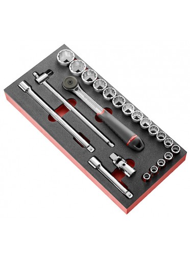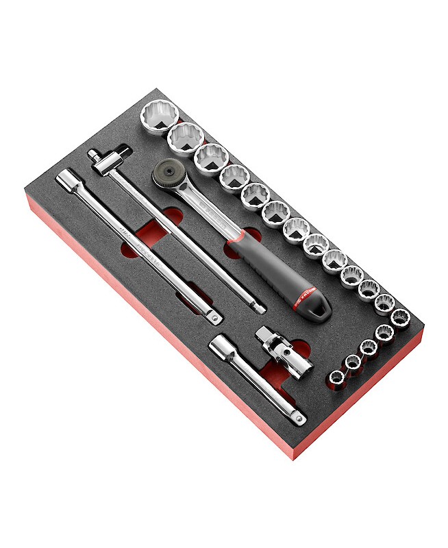 "MOD MOUSSE DOUIL 1/2' 12P IN S.161B 22PCModule mousse douilles 1/2"" 12p métriques 23 pièces - 1 x cliquet - 17 x douilles de 3/8"" à 1""1/4"" - 2 x rallonges - 1 x cardan - 1 x poignée coulissante - FACOM MODM.S161-212U MULTIPLE DE : 1"