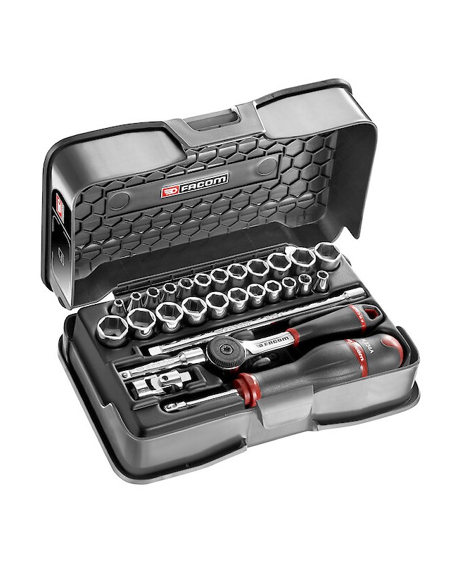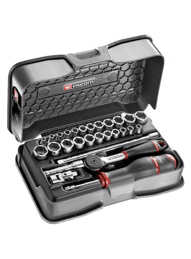 "COFFRET DOUIL 1/4' 6P MM IN R.161B 34PCCoffret 34 pièces cliquet radio 1/4"" métrique et US 3,2 à 14 mm et 3/16 à 9/16"" avec accessoires - FACOM R.420AMU MULTIPLE DE : 1"