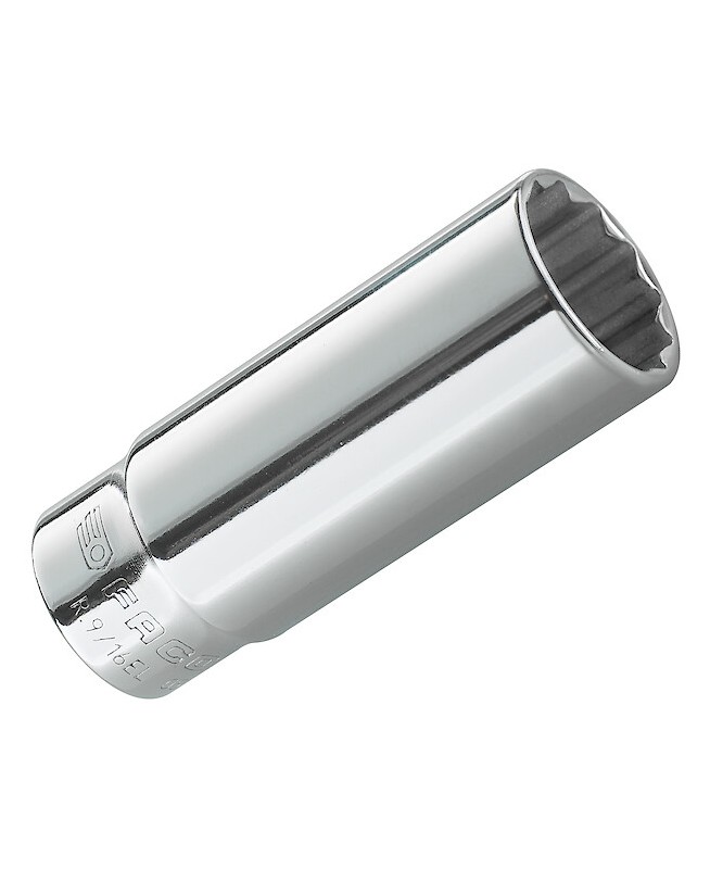 "DOUILLE 1/4 LONGUE 12PANS 9/16Douille radio 1/4"" 12 pans pouces US 9/16""ème longue - FACOM R.9/16EL MULTIPLE DE : 1"