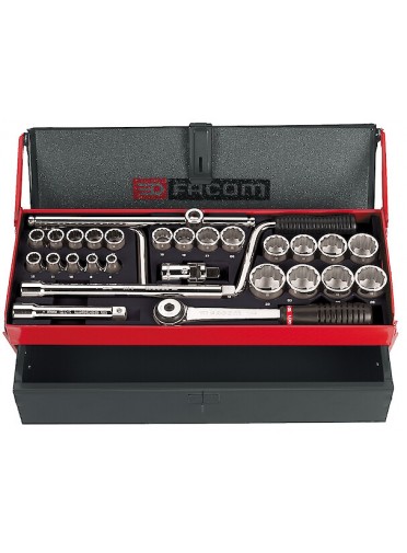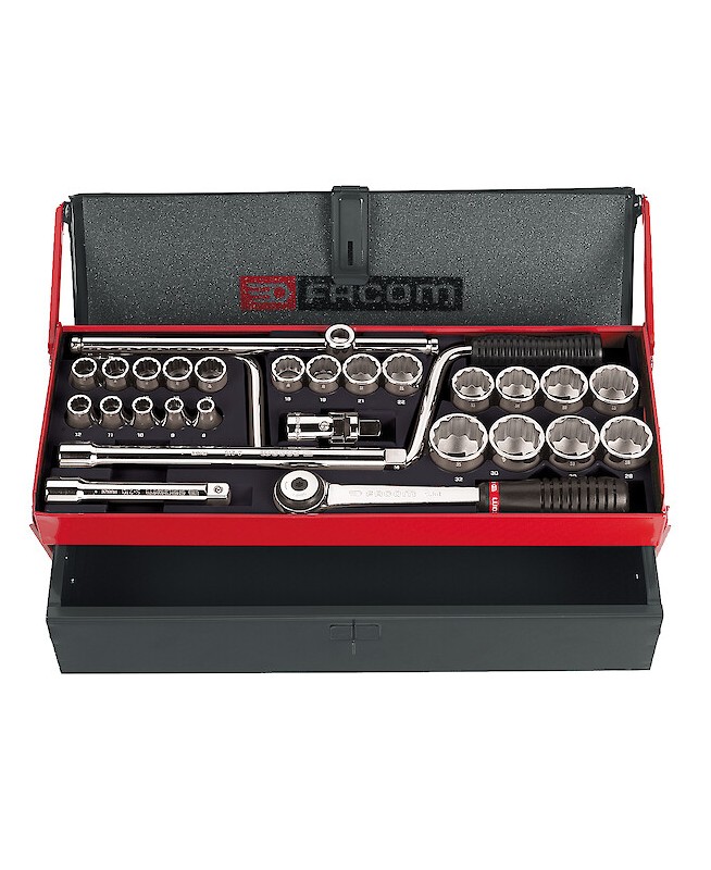 "COFFRET DOUILLE 1/2 12 PANS MMCoffret douilles 1/2"" - 12 pans - 28 pièces - métriques - 22 douilles S - plateau P.22 - coffret tôle BT.6A - FACOM S.442EP MULTIPLE DE : 1"