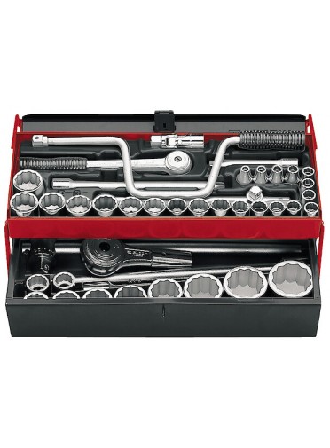 "COFFRET DOUILLE 1/2 , 3/4 EN 'Coffret douilles 12p - 1/2"" et 3/4"" - 3/8"" au 2""- cliquets S.161B - K.151B - douilles S.3/8"" à S.1""1/4"" - K.1""1/16 à K.2"" - rallonges 130 mm et 250 mm - cardan -1/2"" - vilebrequin -boite métallique BT.6A - plateau PL.21.D - FACOM SK.452U MULTIPLE DE : 1"