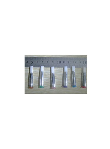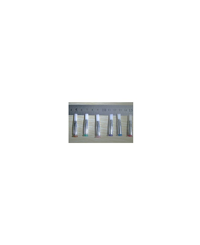 Ces aiguilles brosses sont équipées d’un tube en acier inoxydable à embase luer lock enveloppé dans un tube plaqué nickel. Il y a six matières différentes de poils allant du souple au plus rigide, ceux-ci sont disponibles avec differentes gauges sur le même code couleur internationnal que les aiguilles simples. D’autres tailles sont disponibles sur demande.