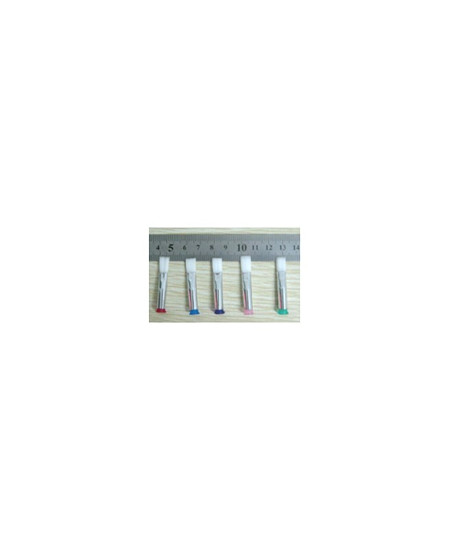 Ces aiguilles brosses sont équipées d’un tube en acier inoxydable à embase luer lock enveloppé dans un tube plaqué nickel. Il y a six matières différentes de poils allant du souple au plus rigide, ceux-ci sont disponibles avec differentes gauges sur le même code couleur internationnal que les aiguilles simples. D’autres tailles sont disponibles sur demande.