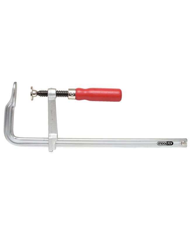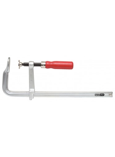 "Idéal pour les constructions métalliques Tige profilé en double T Mors mobile Grande stabilité Vis de force très robuste Poignée en bois Tige profilé en acier Etriers forgés Zingué- Attribut de fonction 1: Vis de force extrêmement robuste