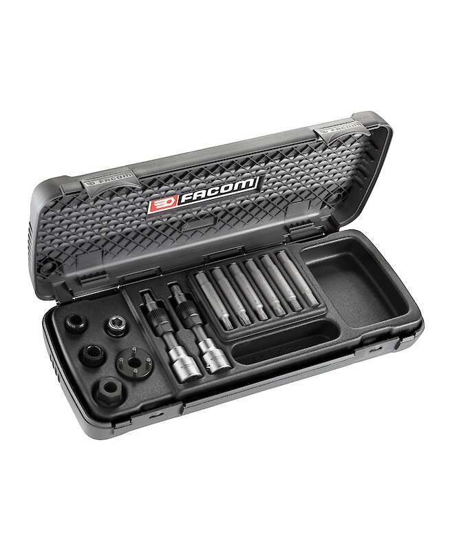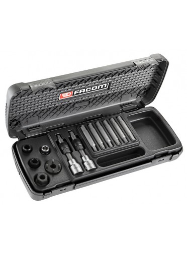 DEMONTE POULIE D'ALTERNATEURCoffret pour le montage et démontage de la poulie alternateur - composition de 13 outils - 2 embouts Torx, XZN, 6 pans - et douilles spéciales pour le montage et démontage - FACOM DM.APR MULTIPLE DE : 1