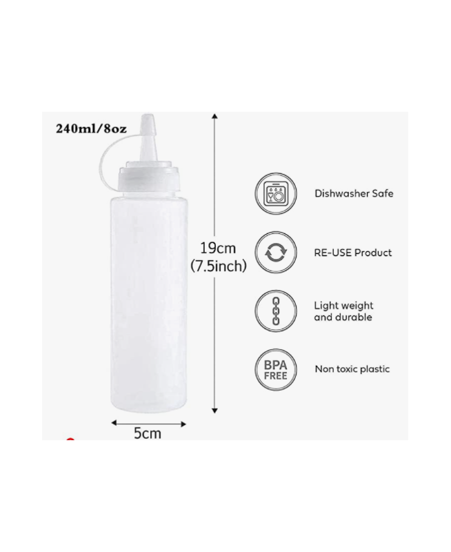 ?Facile à Utiliser?Il suffit d'ouvrir - remplir avec les liquides nécessaires etc, fermer à l’aide de nos bouchons attachés pratiques - et presser doucement pour distribuer le liquide - sa grande ouverture le rend facile à remplir au besoin