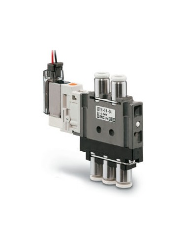 Les demandes des clients pour de petits composants haute performance on été satisfait grâce à notre nouvelle gamme compacte d'électrodistributeurs 5/2 série S0700 Développés initialement pour la fabrication de semi-conducteurs et convenant également à diverses applications générales pour les machines industrielles les distributeurs de la série S0700 sont de taille exceptionnellement compacte et d'une largeur de corps de 7 mm seulement Cependant leur performance en terme de débit élevé est remarquable pour des distributeurs de leur taille avec la capacité à entraîner des vérins d'un alésage allant jusqu'à 25 mm Avec une durée de vie dépassant les 50 million de cycles pour une consommation électrique de 0 35 W les distributeurs s'utilisent avec des raccords cannelés ou instantanés tandis que leur hauteur réduite assurent des dimensions compactes de 7 5 mm et 8 5 mm respectivement lorsqu'ils sont montés sur des embases associables à câble embrochable ou des barrettes à connexion embrochable minces et compactes De plus ces distributeurs peuvent être utilisés avec une large gamme d'options de câblage série ou parallèle