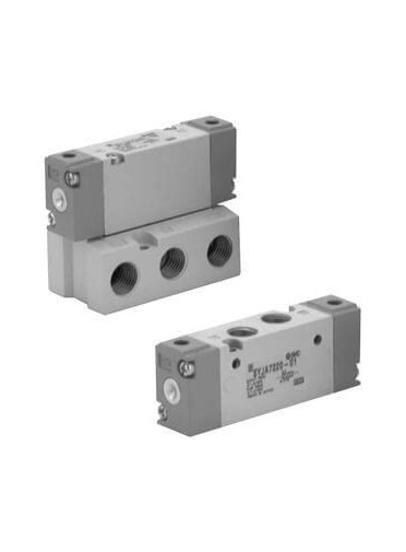 La vanne SYJ est une combinaison innovante d'efficacité au niveau de l'encombrement et de supériorité au niveau des performances ce qui dote d'une vraie valeur ajoutée cette série Qu'elle soit utilisée sur embase ou en tant que vanne individuelle son profil étroit accroît la flexibilité de sa conception et réduit les besoins d'espace Le distributeur SYJ utilise une conception de pilote à faible consommation (0 5 watts en standard) ce qui réduit de façon drastique la génération de chaleur thermique Cela améliore les performances diminue les coûts de fonctionnement et permet d'effectuer un contrôle direct au travers des relais de sortie d'un API Tous les raccords électriques des vannes SYJ sont disponibles avec des indicateurs lumineux et une protection de circuit contre les surtensions Les distributeurs de la série SYJ peuvent être configurées sur des embase à montage sur embase ou de façon individuelle sur des embases ce qui permet d'offrir une vaste gammes de solutions s'adaptant à vos besoins en ingénierie