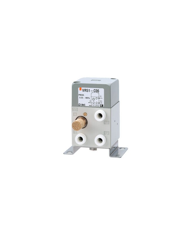 La série VR1210/1200 de sélecteur de circuit est une série de vannes 3/2 dotées d'une sortie et de deux entrées et de deux signaux pneumatiques La sortie est toujours alimentée par une pression d'entrée élevée La série VR12**F est une série d'interrupteurs servant au contrôle des conduites du système de signaux de pression pneumatique Le raccordement est possible en tout point et les raccords instantanés simplifient le raccordement Les temporisateurs de la série VR2110 combinent un orifice réglable et un débit déterminé ce qui leur permet de transmettre le signal pneumatique après que le temps fixé se soit écoulé