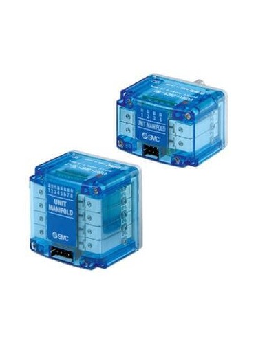 Les constructeurs de machines qui recherchent un ilot de Distribution extrêmement compact et de petite taille pour une utilisation avec des électrodistributeurs à commande pneumatique 3/2 voies ont maintenant trouvé leur solution grâce au lancement de notre série VV061 Pour ce produit développé initialement suite aux demandes du secteur des sciences de la vie et particulièrement adapté aux applications utilisant de petits actionneurs et du vérin cartouche les ingénieurs R&D de chez SMC ont créé une embase entièrement intégrée qui incorpore les distributeurs les cartes des circuits imprimés et les raccords en un ilot unique et compacte Conçu pour une utilisation avec les distributeurs V060 SMC de 6 mm d'épaisseur en configurations de quatre ou huit distributeurs l'unité entière mesure seulement 38 6 mm de large 31 5 mm de profondeur et 26 mm ou 38 mm de hauteur Ne pesant que 75 grammes ou 47 grammes selon le modèle choisi le VV061 est disponible soit en raccord instantané de 2 mm ou en raccord cannelé de 4 mm et respecte les normes CE UL et CSA Disponible en montage sur panneau ou sur fixation la maintenance est facile car l'embase se détache simplement de la plaque de raccordement et du câble de connexion électrique Les options du distributeur V060 comprennent les modèles standard 0 5W et les modèles à faible consommation d'énergie 0 23W qui sont particulièrement utiles aux longues applications continues