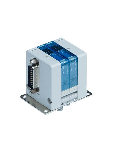 En réponse à la demande de l'industrie des semi-conducteurs et de l'électronique pour une embase compacte avec électrodistributeurs 3/2 nous sommes heureux de lancer notre nouvelle série VV100 Conçue dans un souci de gain d'espace et de facilité d'utilisation nos ingénieurs R&D ont intégré astucieusement deux électrodistributeurs 3/2 dans chaque station permettant ainsi la réduction de l'encombrement de l'unité entière En adoptant cette caractéristique unique les embases unitaires VV100 peuvent atteindre jusqu'à 146 4 mm de longueur maxi en changeant simplement la longueur du tirant de l'embase et en ajoutant ou retirant le nombre de stations embrochables (connecteur sub-D) ou câblés Le gain d'énergie a aussi été pris en considération puisque les distributeurs individuels peuvent être commandés avec un circuit d'économie d'énergie qui réduit la consommation de 0 4W en modèle standard à seulement 0 15W en modèle continu Chaque distributeur peut également être désactivé manuellement garantissant ainsi une maintenance sûre La série VV100 existe en montage direct ou avec fixation et aussi dans différentes tailles de raccordements y compris les raccordements instantanés miniature de diamètre 2 mm