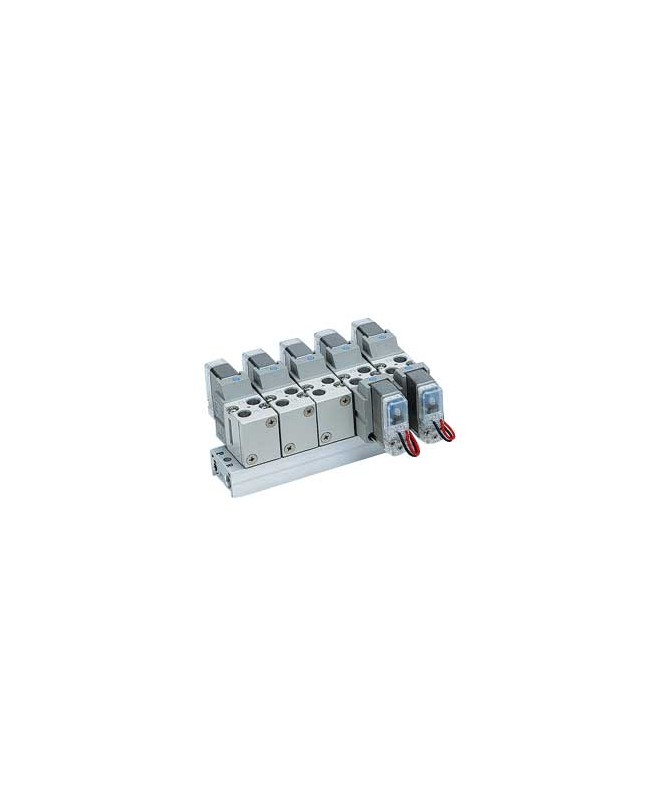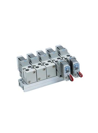 La série VF d'électrodistributeurs 5/2 et 5/3 à pilote offre une grande capacité de débit dans un volume compact La série VF est disponible dans de nombreuses versions dont trois commandes manuelles et quatre types de connexion électrique L'échappement commun pour la vanne principale et la vanne à pilote est également disponible