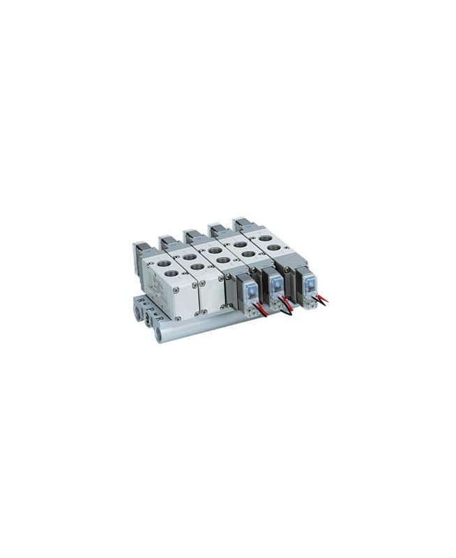 La série VF d'électrodistributeurs 5/2 et 5/3 à pilote offre une grande capacité de débit dans un volume compact La série VF est disponible dans de nombreuses versions dont trois commandes manuelles et quatre types de connexion électrique L'échappement commun pour la vanne principale et la vanne à pilote est également disponible