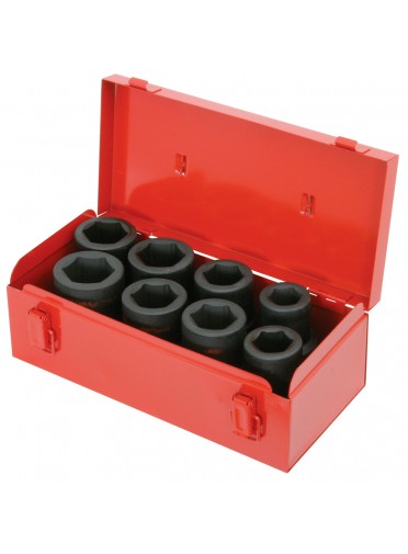 Coffret de douilles longues à chocs 1''. 24 à 38 mm. 8 pièces