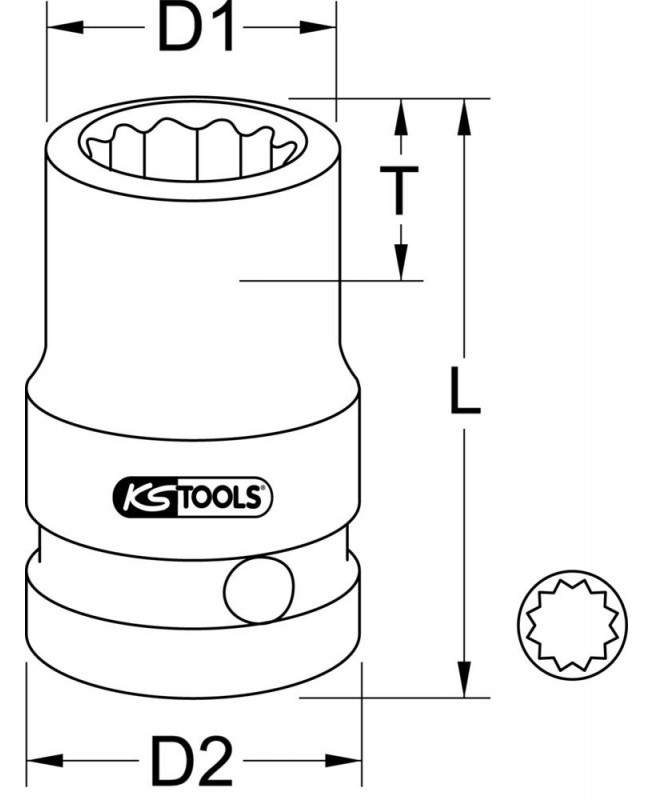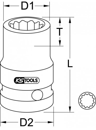 Douille à chocs courte 12 pans 1-2''. 22 mm