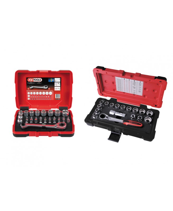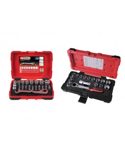 Lot de coffrets de douilles traversantes 1/4'' - 3/8'' - 1/2''