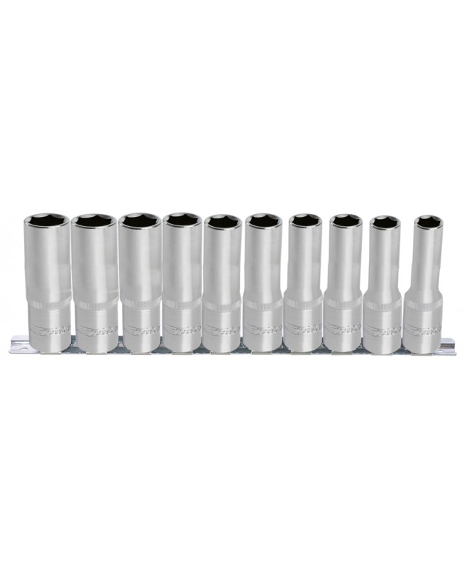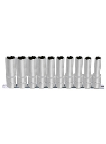 Jeu de 10 douilles longues 6 pans ULTIMATE® sur rail 1/4'', 4-13 mm